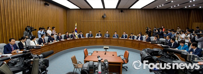 (서울=포커스뉴스) 정진석 새누리당 원내대표가 21일 오전 서울 여의도 국회에서 열린 원내대책회의에 참석해 모두발언 하고 있다.