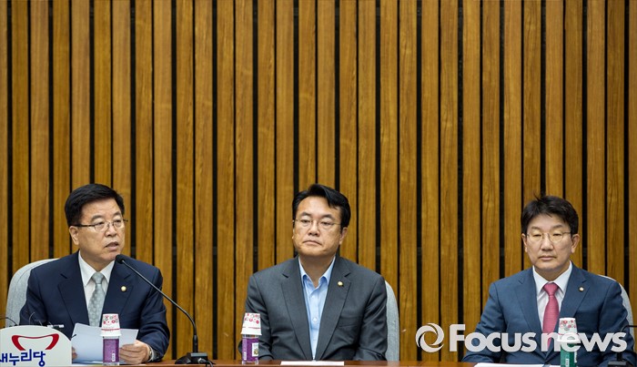 (서울=포커스뉴스) 김광림 새누리당 정책위의장이 21일 오전 서울 여의도 국회에서 열린 원내대책회의에 참석해 모두발언 하고 있다.