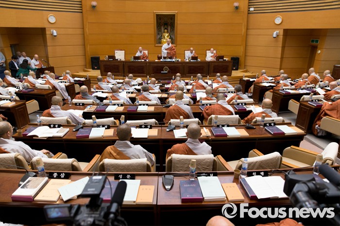 (서울=포커스뉴스) 21일 오전 서울 종로구 한국불교역사문화기념관에서 열린 제206회 조계종 중앙종회 임시회의에서 조계종 중앙종회의장 성문 스님이 개회사를 하고 있다. 이번 중앙종회 임시회에서는 총무원장 선출제도를 집중적으로 다룰 예정이다.