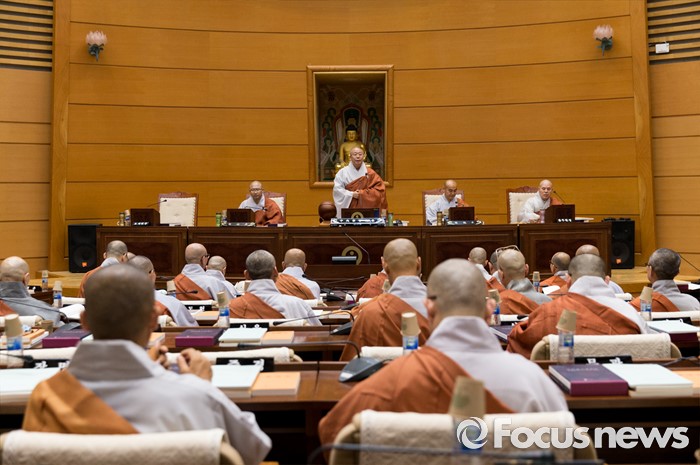 (서울=포커스뉴스) 21일 오전 서울 종로구 한국불교역사문화기념관에서 열린 제206회 조계종 중앙종회 임시회의에서 조계종 중앙종회의장 성문 스님이 개회사를 하고 있다. 이번 중앙종회 임시회에서는 총무원장 선출제도를 집중적으로 다룰 예정이다.