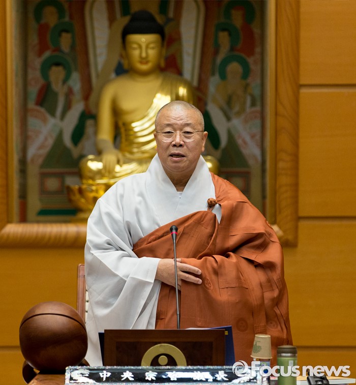 (서울=포커스뉴스) 21일 오전 서울 종로구 한국불교역사문화기념관에서 열린 제206회 조계종 중앙종회 임시회의에서 조계종 중앙종회의장 성문 스님이 개회사를 하고 있다. 이번 중앙종회 임시회에서는 총무원장 선출제도를 집중적으로 다룰 예정이다.