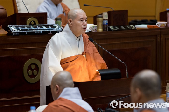 (서울=포커스뉴스) 21일 오전 서울 종로구 한국불교역사문화기념관에서 열린 제206회 조계종 중앙종회 임시회의에서 조계종 총무원장 자승 스님이 인사말을 하고 있다. 이번 중앙종회 임시회에서는 총무원장 선출제도를 집중적으로 다룰 예정이다.