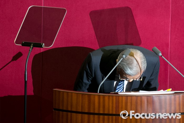| △ 허리 숙여 인사하는 김종인 |