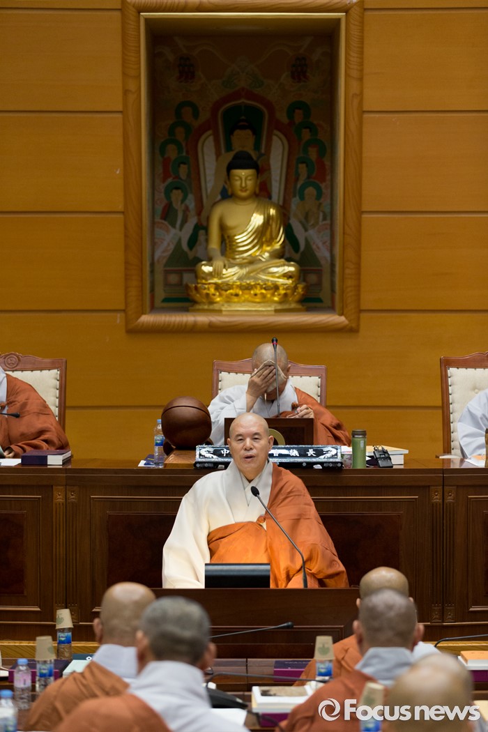 (서울=포커스뉴스) 21일 오전 서울 종로구 한국불교역사문화기념관에서 열린 제206회 조계종 중앙종회 임시회의에서 조계종 총무원장 자승 스님이 인사말을 하고 있다. 이번 중앙종회 임시회에서는 총무원장 선출제도를 집중적으로 다룰 예정이다.