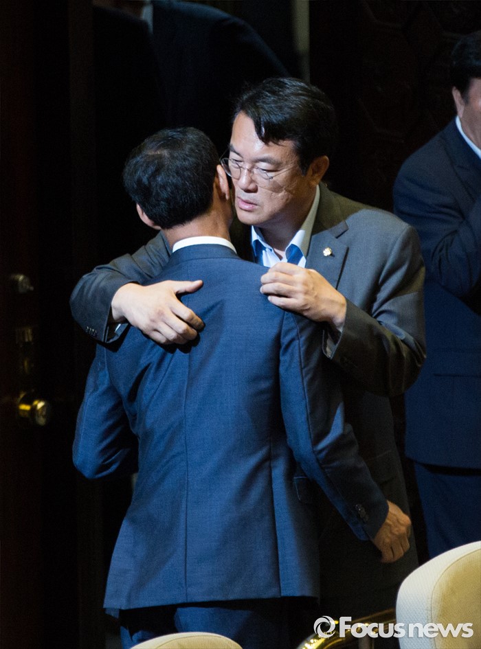 (서울=포커스뉴스) 정진석 새누리당 원내대표와 최정호 국토교통부 제2차관이 21일 오전 서울 여의도 국회에서 열린 본회의에 참석해 대화를 나누고 있다.