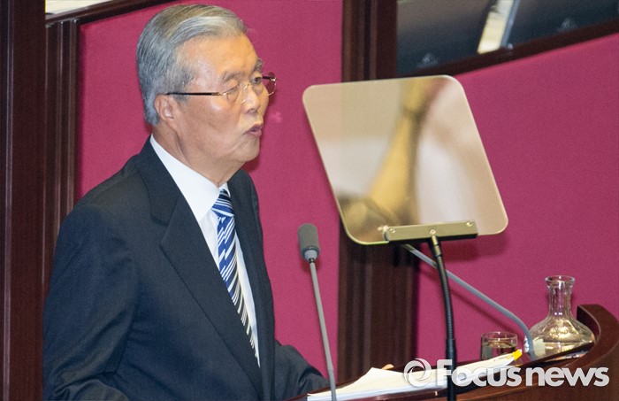 (서울=포커스뉴스) 21일 오전 서울 여의도 국회에서 열린 343회 국회(임시회) 4차 본회의에 참석한 김종인 더불어민주당 비대위 대표가 교섭단체 대표연설을 하고 있다.