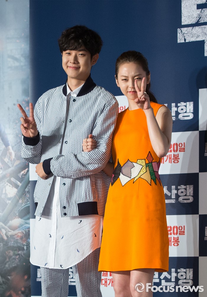 (서울=포커스뉴스) 21일 오전 서울 종로구 나인트리컨벤션에서 열린 영화 '부산행' 제작보고회에 참석한 배우 최우식(왼쪽)과 안소희가 포토타임을 갖고 있다.