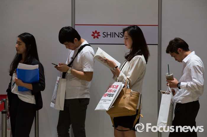 (서울=포커스뉴스) 21일 오후 서울 강남구 코엑스 D2홀에서 열린 신세계그룹&파트너사 채용박람회에서 구직자들이 상담을 기다리고 있다.