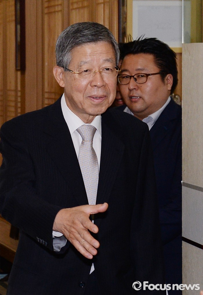 (서울=포커스뉴스) 김희옥 새누리당 혁신비대위원장이 21일 오후 서울 여의도 한 식당에서 초선 의원들과의 오찬에 앞서 인사하고 있다.