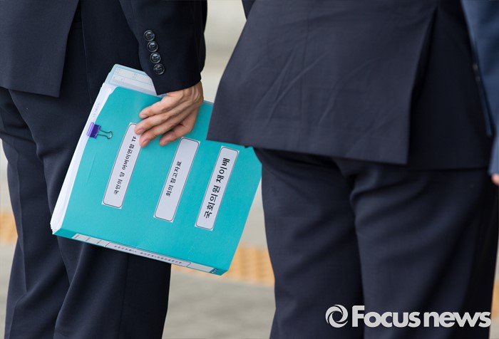 (서울=포커스뉴스) 21일 오후 서울 서초구 대검찰청에서 이용주(오른쪽 두번째) 국민의당 의원이 어버이연합 등 불법자금지원 의혹 규명 진상조사 특별팀(TF)의 항의방문을 위해 대검으로 들어서고 있다.