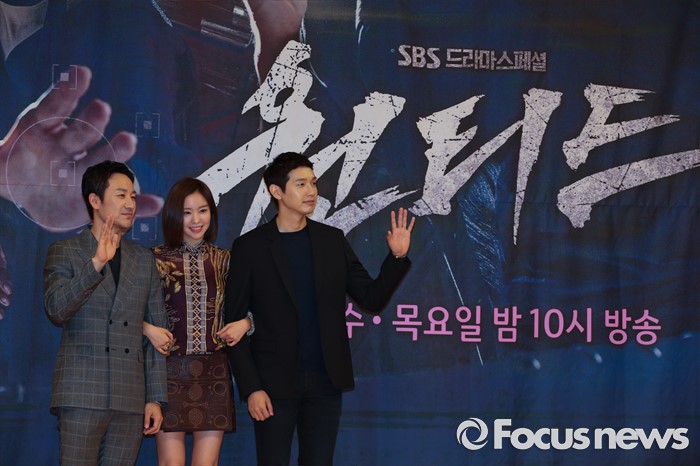 (서울=포커스뉴스) 21일 오후 서울 양천구 목동SBS에서 열린 SBS드라마스페셜 원티드 제작발표회에 참석한 배우 엄태웅,배우 김아중, 배우 지현우가 포토타임을 갖고 있다.