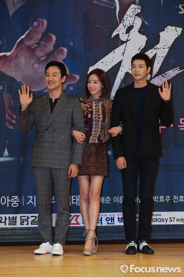 (서울=포커스뉴스) 21일 오후 서울 양천구 목동SBS에서 열린 SBS드라마스페셜 원티드 제작발표회에 참석한 배우 엄태웅,배우 김아중, 배우 지현우가 포토타임을 갖고 있다.