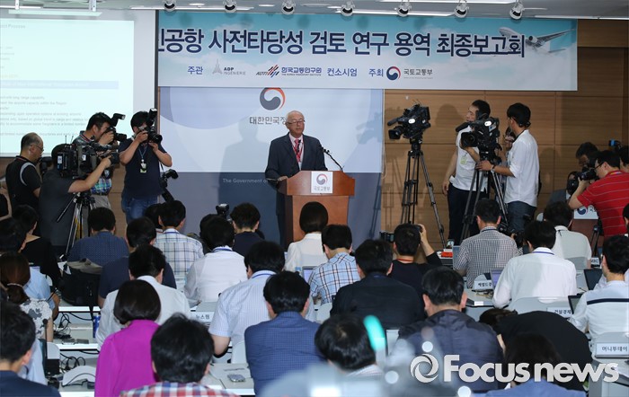(세종=포커스뉴스) 장 마리 슈발리에 프랑스 파리공항공단자회사 ADPi 수석엔지니어가 21일 오후 세종시 정부세종청사 국토교통부 브리핑실에서 열린 동남권 신공항 타당성 검토 연구 최종 보고회에서 입지선정 결과를 발표하고 있다.