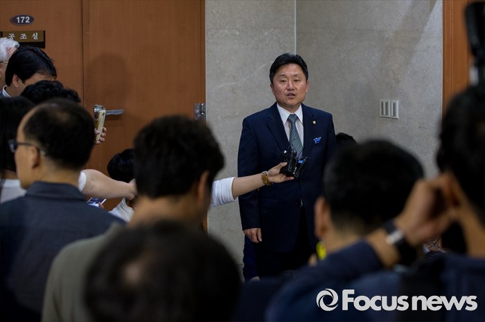 (서울=포커스뉴스) 21일 오후 서울 여의도 국회 정론관에서 최인호 더불어민주당 의원이 영남권 신공항 결과 발표 관련 기자회견을 하고 있다.