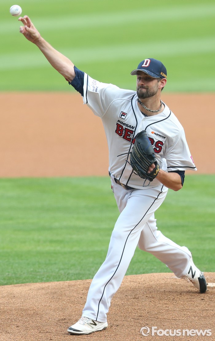 (서울=포커스뉴스) 21일 서울 잠실구장에서 열린 2016 프로야구 kt-두산 경기에서 1회초 두산 선발투수 니퍼트가 투구하고 있다.