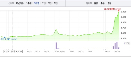 대아티아이는 22일 오전 9시39분 현재 전일 대비 10.48%(220원) 상승한 2320원에 거래되고 있다. 대아티아이는 17일부터 상승폭을 기록해왔고, 20일에는 가격제한폭인 30%의 상승폭을 나타냈다.
