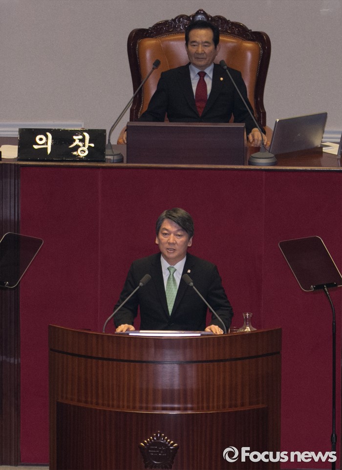 (서울=포커스뉴스) 22일 오전 서울 여의도 국회에서 열린 343회 국회(임시회) 5차 본회의에 참석한 안철수 국민의당 상임공동대표가 교섭단체 대표연설을 하고 있다.