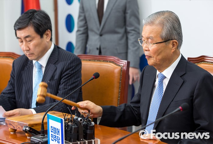 (서울=포커스뉴스) 김종인 더불어민주당 비상대책위 대표가 22일 오전 서울 여의도 국회에서 열린 비상대책위원회의에 참석해 의사봉을 두드리고 있다.