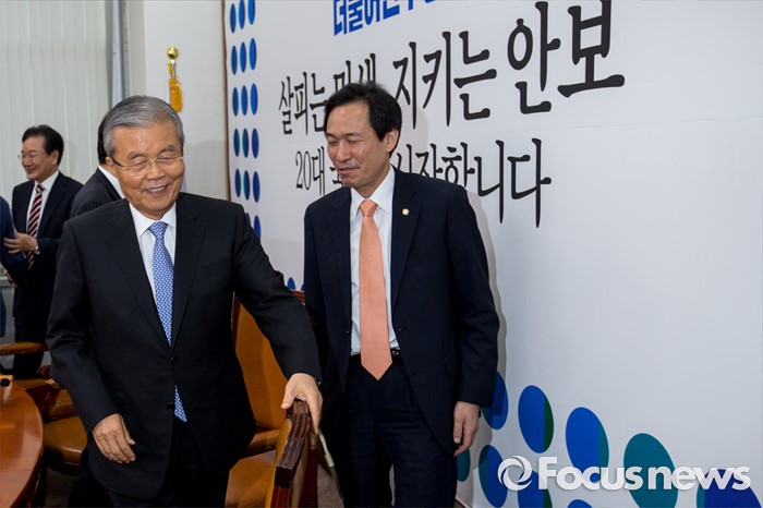 (서울=포커스뉴스) 김종인 더불어민주당 비상대책위 대표와 우상호 원내대표가 22일 오전 서울 여의도 국회에서 열린 비상대책위원회의를 마친 뒤 회의실을 나서고 있다.