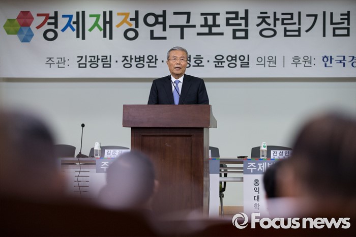 (서울=포커스뉴스) 김종인 더불어민주당 비상대책위원회 대표가 22일 오전 서울 여의도 국회 의원회관에서 열린 '경제재정연구포럼 창립기념 토론회'에 참석해 축사를 하고 있다.