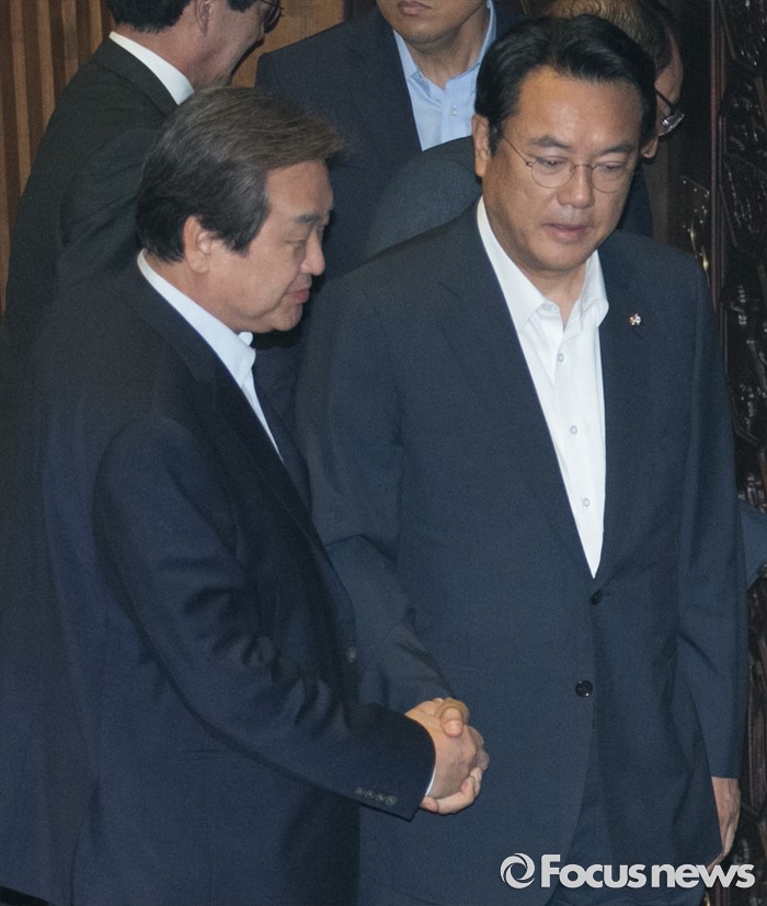 | △ 악수하는 정진석-김무성 |