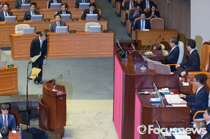 (서울=포커스뉴스) 안철수 국민의당 상임공동대표가 22일 오전 서울 여의도 국회에서 열린 본회의에 참석해 교섭단체대표연설을 하기 전 정세균 국회의장에게 인사 하고 있다.