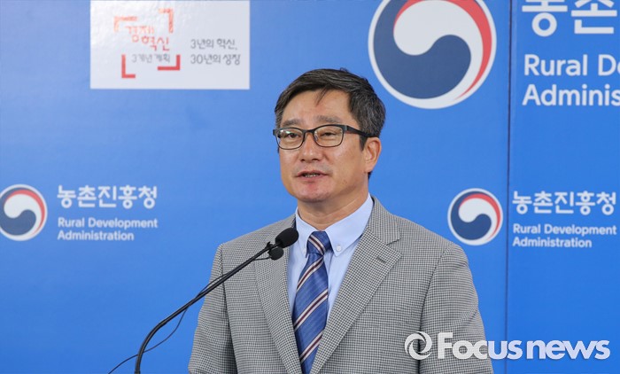 (세종=포커스뉴스) 홍진환 농촌진흥청 국립농업과학원 농산물안전성부장이 22일 오전 세종시 정부세종청사 농림축산식품부 기자실에서 농산물 식중독균 검출키트 개발 브리핑을 하고 있다.