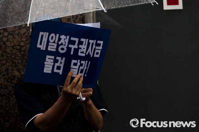 (서울=포커스뉴스) 22일 오후 서울 중구 신당동 김종필 전 총리 자택 앞에서 일제 강제동원희생자유가족협동조합 및 아시아태평양 전쟁희생자 한국유족회 회원들이 '한일협정 당시 일본외상 오히라 와 메모로 합의한 역사의 진실을 밝힐 것'을 촉구하고 있다.