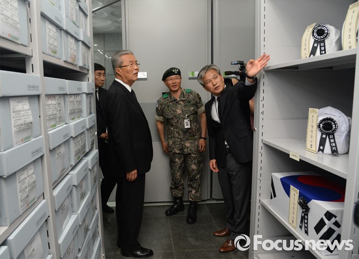 | △ 유해발굴감식단 유해봉안소 둘러보는 김종인 대표 |