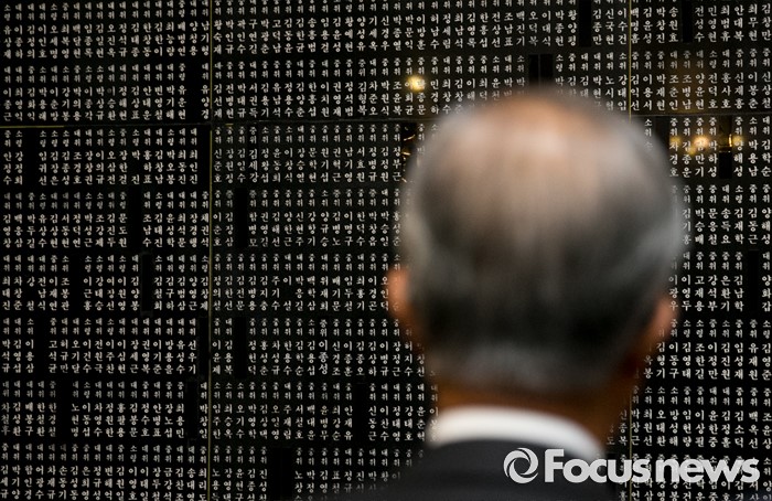 | △ 현충탑 내 위패봉안관 둘러보는 김종인 |