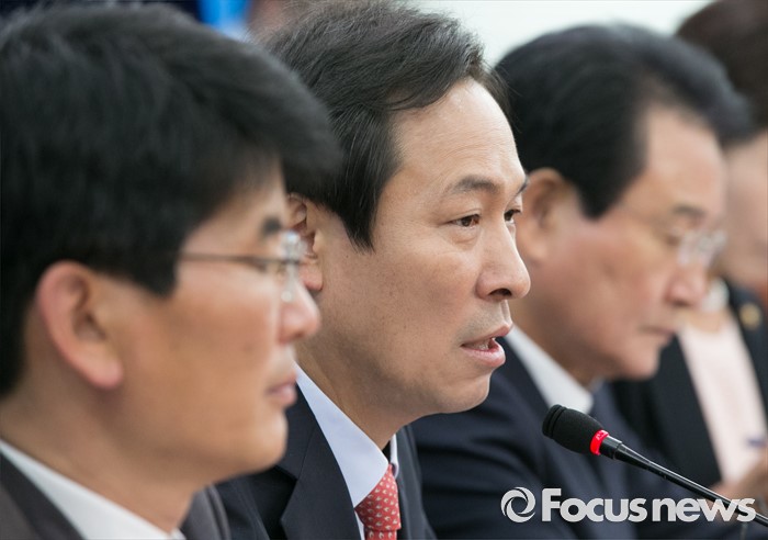 (서울=포커스뉴스) 우상호 더불어민주당 원내대표가 23일 오전 서울 여의도 국회에서 열린 정책조정회의에 참석해 모두발언을 하고 있다.