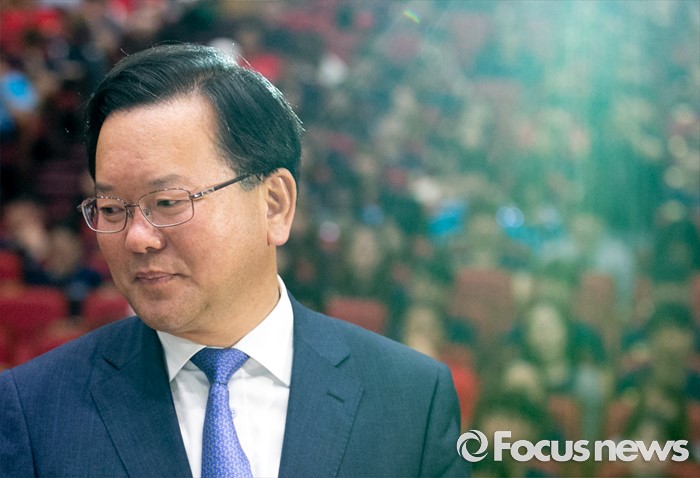 (서울=포커스뉴스) 전당대회 불출마를 선언하고 대권 도전을 시사한 김부겸 더불어민주당 의원이 23일 오전 서울 여의도 국회 의원회관에서 열린 대학생리더십 아카데미에 참석해 특강을 위해 단상으로 향하고 있다.