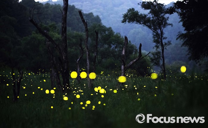 (서울=포커스뉴스) 운문산반디불이가 집단으로 발광하며 군무를 펼치고 있다. <사진제공=임완호감독>