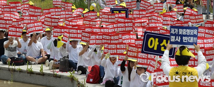 (세종=포커스뉴스) 23일 오전 세종시 정부세종청사 보건복지부 앞에서 충남민간어린이집연합회 회원들이 맞춤형보육 제도개선 및 시행연기 촉구 결의대회를 열고 있다.