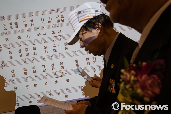 (서울=포커스뉴스) 23일 오전 서울 용산구 전쟁기념관 뮤지엄 웨딩홀에서 참전유공자들이 '6.25전쟁 참전유공자 위로연 및 호국영웅기장 전수식'에 참석하고 있다.