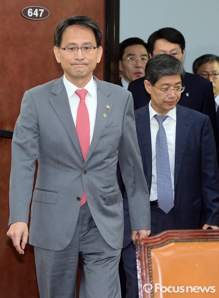 (서울=포커스뉴스) 23일 오후 서울 여의도 국회에서 열린 정보위원회 전체회의에 이창재(왼쪽) 법무부 차관 등 법무부 관계자들이 참석하고 있다.