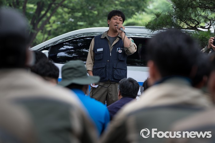 (서울=포커스뉴스) 23일 오후 서울 영등포구 KDB 산업은행 앞에서 STX조선해양노조원들이 일방적 조선업 구조조정 중단 및 공적자금 사용 내역 공개를 요구하는 결의대회를 하고 있다.