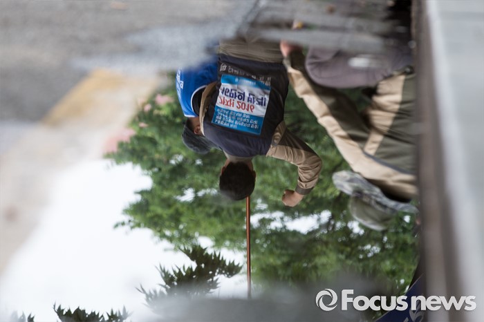 (서울=포커스뉴스) 23일 오후 서울 영등포구 KDB 산업은행 앞에서 STX조선해양노조원들이 일방적 조선업 구조조정 중단 및 공적자금 사용 내역 공개를 요구하는 결의대회를 하고 있다.