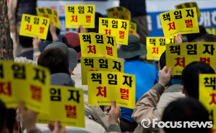 (서울=포커스뉴스) 23일 오후 서울 영등포구 KDB 산업은행 앞에서 STX조선해양노조원들이 일방적 조선업 구조조정 중단 및 공적자금 사용 내역 공개를 요구하는 결의대회를 하고 있다.