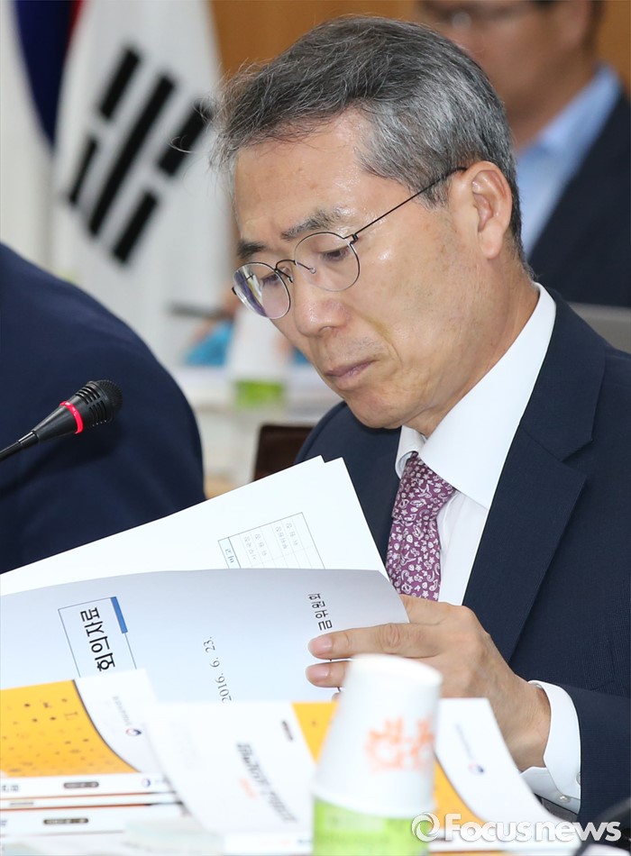 (세종=포커스뉴스) 박준성 최저임금위원회 위원장이 23일 오후 세종시 정부세종청사 고용노동부 최저위 전원회의실에서 열린 5차 전원회의에서 자료를 살피고 있다.