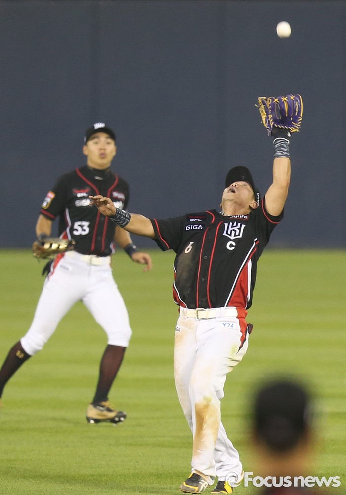 (서울=포커스뉴스) 23일 서울 잠실구장에서 열린 2016 프로야구 kt-두산 경기 4회말 2사 1루에서 kt 2루수 박경수가 두산 박세혁의 뜬공 타구를 잡고 있다.