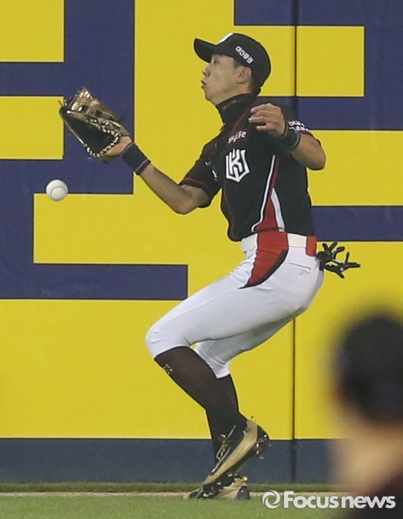 (서울=포커스뉴스) 23일 서울 잠실구장에서 열린 2016 프로야구 kt-두산 경기 6회말 1사후 kt 중견수 이대형이 두산 에반스의 뜬공 타구를 펜스 앞에서 놓치고 있다.