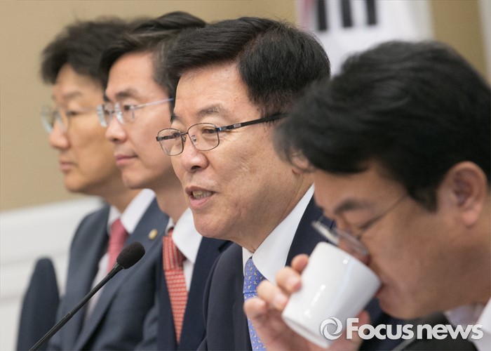 (서울=포커스뉴스) 24일 오전 서울 여의도 국회 귀빈식당에서 열린 2016년 하반기 경제정책방향 당정간담회에 참석한 김광림 새누리당 정책위의장이 인사말을 하고 있다.