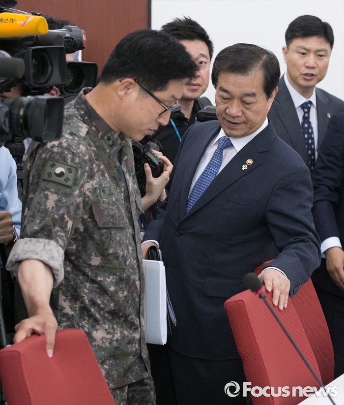(서울=포커스뉴스) 24일 오전 서울 여의도 국회에서 열린 북한 미사일 발사 관련 국방부 현안보고에 황인무(오른쪽) 국방부 차관이 참석하고 있다.