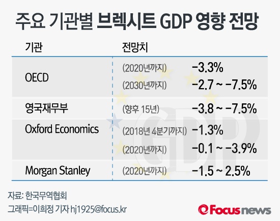 | △ [그래픽] 주요 기관별 브렉시트 GDP 영향 전망 |