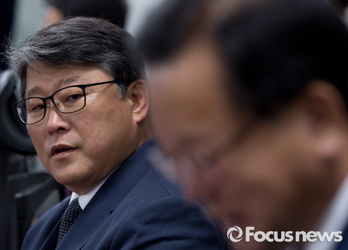 (서울=포커스뉴스) 24일 오후 서울 여의도 국회 의원회관에서 열린 여야 대구지역 의원들과 강호인 국토교통부 장관의 영남권 신공항 백지화 관련 면담에 참석한 조원진(왼쪽) 새누리당 의원이 김부겸 더불어민주당 의원을 바라보고 있다.