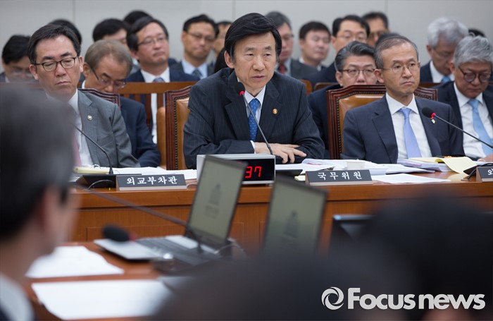 (서울=포커스뉴스) 24일 오전 서울 여의도 국회에서 열린 외교통일위원회 전체회의에 참석한 윤병세 외교부 장관이 의원들의 질의에 답하고 있다.