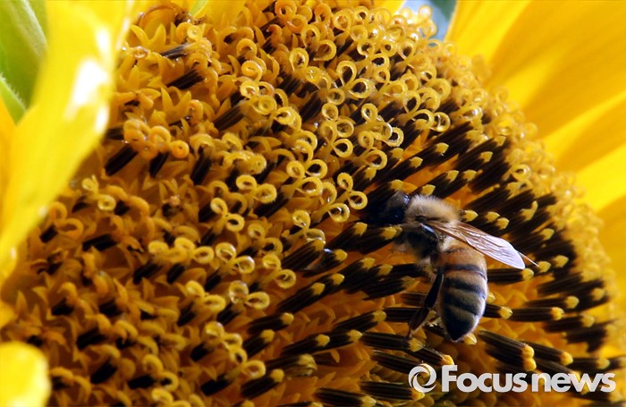 (대전=포커스뉴스) 장마가 소강상태를 보인 24일 오후 대전 유성구 국립대전현충원 보훈동산에 핀 해바라기에 하트모양이 보이고 있다.