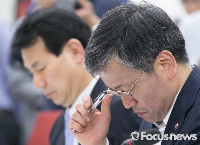 (서울=포커스뉴스) 24일 오후 서울 여의도 국회에서 열린 새누리당 브렉시트(Brexit) 관련 긴급현안 점검회의에 참석한 최상목(오른쪽) 기획재정부 1차관과 정은보 금융위원회 부위원장이 의원들의 발언을 듣고 있다.