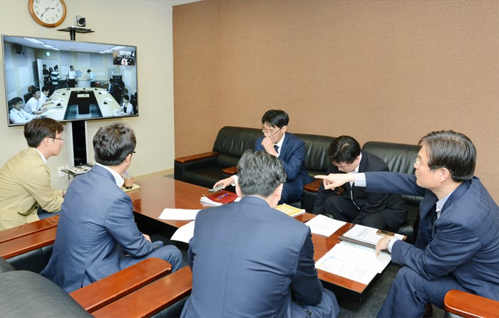 (서울=포커스뉴스) 이관섭 산업통상자원부 1차관이 24일 서울 무역보험공사 회의실과 세종시 산업부 영상회의실에서 브렉시트 대응 실물경제상황 긴급 점검회의를 갖고 브렉시트가 우리나라의 수출, 투자, 에너지 등 각 부문에 미칠 영향을 점검하고 향후 대응방안을 논의하고 있다. <사진제공=산업통상자원부>
